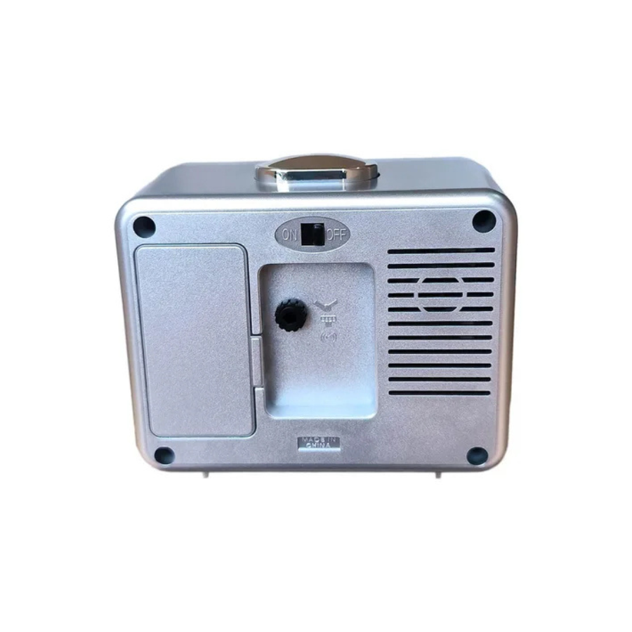 Características: movimiento analógico de cuarzo preciso con manecillas de lectura clara, números grandes y contrastantes para fácil visualización de la hora, alarma sonora con señal efectiva para despertar, diseño compacto y liviano ideal para espacios reducidos, carcasa de resina duradera